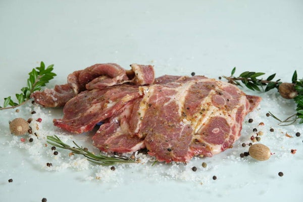 Carne di suino, pomodoro, olive, capperi, *aromi, sale, pepe, pepe rosa.